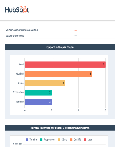 - Suivez vos données de ventes dans la feuille Tableau de bord. Il montre votre pipeline de ventes, la valeur de vos opportunités ouvertes, le nombre de contacts et d'autres informations essentielles.