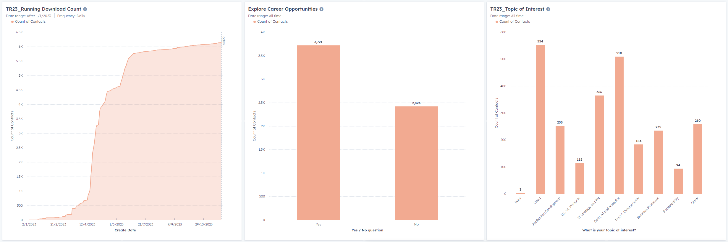 Par ailleurs, grâce aux paramètres UTMs visualisés dans le tableau de bord HubSpot, aux KPIs de LinkedIn Ads et aux retours des équipes terrain, le département marketing a pu identifier la source des prospects, prévoir des scénarios avec du contenu personnalisé, affecter les prospects auprès des bonnes personnes et évaluer la qualité des leads talents. Le résultat : l’optimisation des campagnes publicitaires tout au long de l’entonnoir de conversion.