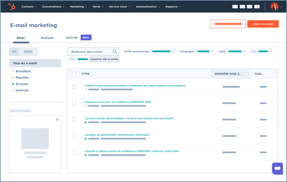 L'outil d'e-mail marketing est tellement plus simple à utiliser que Mailchimp. En plus, les analytics sont de bien meilleure qualité. Je suis vraiment heureux d'avoir découvert HubSpot.