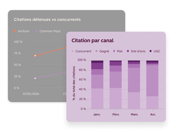• Part de voix : Fréquence à laquelle votre marque est mentionnée par rapport à vos concurrents sur les mêmes prompts.