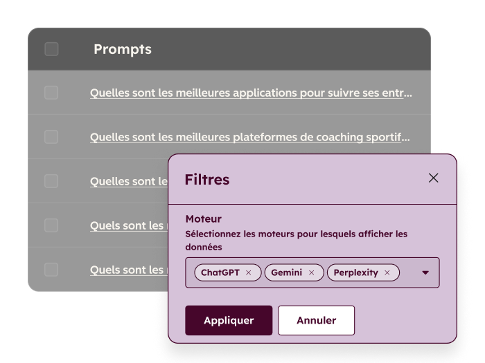 • Couverture multi-moteurs (ChatGPT, Gemini, Perplexity)