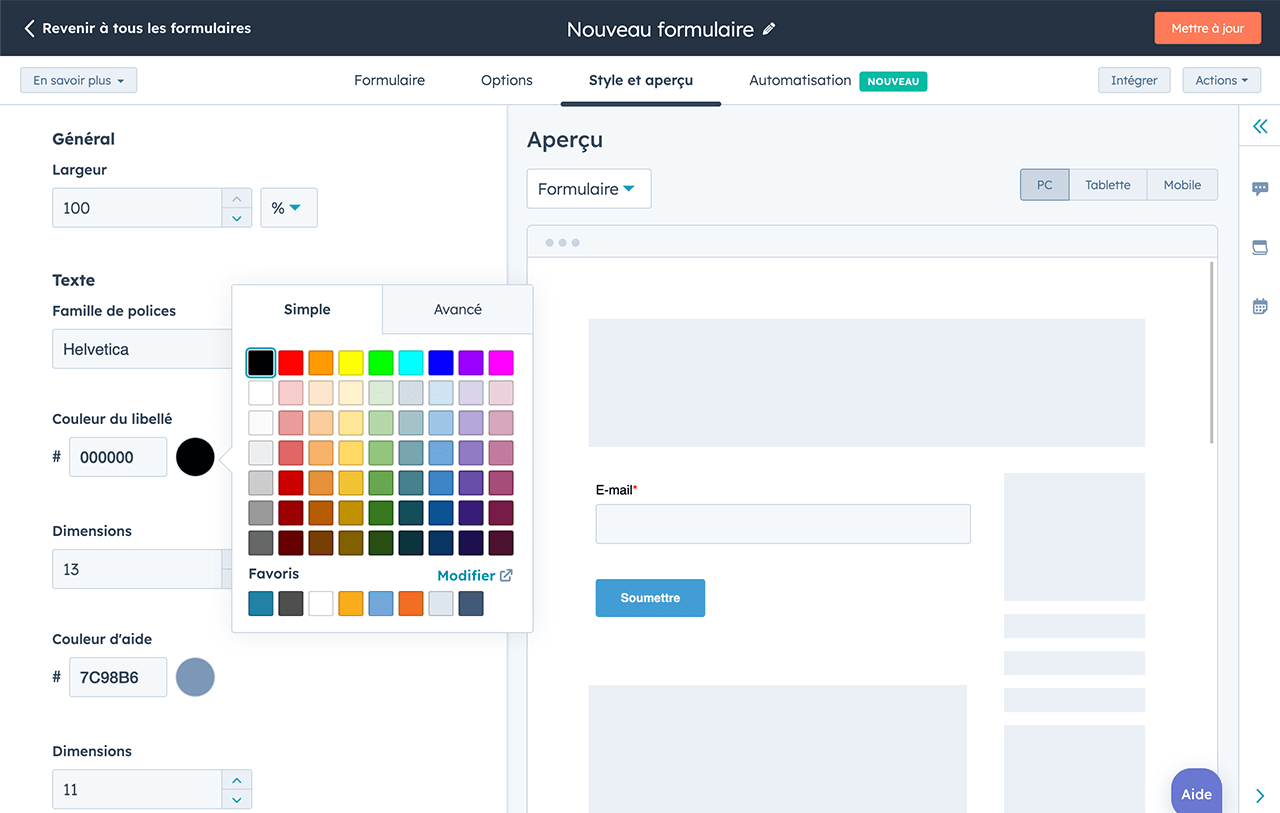 Ajoutez des champs et demandez des informations spécifiques, afin de créer aussi bien des formulaires de contact que de demande de devis ou d'assistance technique, qui reflètent votre image de marque et vous permettent de renforcer la relation et la confiance avec vos clients.