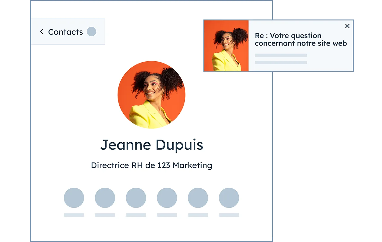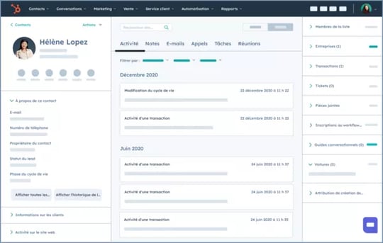 Un flux d'activités intégré enregistre automatiquement l'historique des interactions de vos contacts avec vos e-mails, appels et chats directement dans les fichiers clients afin que vous puissiez véritablement personnaliser vos actions commerciales.