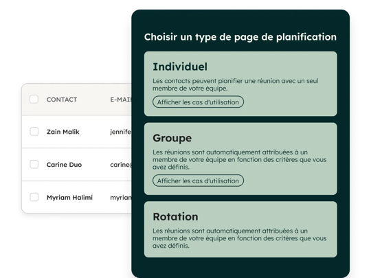 Un logiciel de rendez-vous est un outil qui facilite et accélère la prise de rendez-vous entre plusieurs personnes. Plutôt que de longues chaînes d'e-mails pour trouver une heure qui convient à tous, vous pouvez utiliser un planificateur de réunions sous forme de lien que votre équipe peut envoyer à une ou plusieurs personnes et qui leur permet de voir les différents créneaux disponibles pour prendre rendez-vous avec différents collaborateurs.
